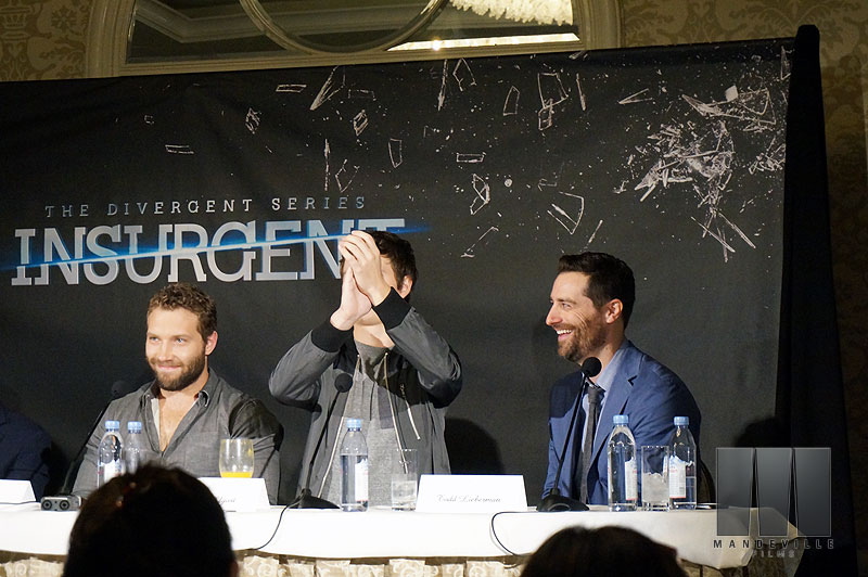On Friday, March 6, Mandeville Film’s Executive Producer Todd Lieberman spoke on an all male panel at the Insurgent junket at the Beverly Hills’ Four Seasons Hotel. Panelists included Lieberman, co-producer Douglas Wick and the film’s stars Mekhi Phifer, Theo James, Jai Courtney, and Ansel Elgort.